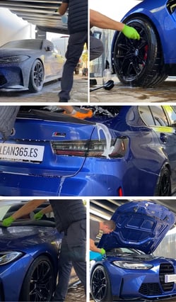 6. Lavado Detallado: Pasamos por la carrocería con un cepillo de cerdas suaves y manopla, asegurando que cada parte quede perfectamente limpia sin dañar la pintura.