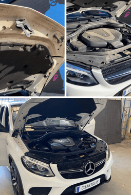 2. Limpieza a pincel: Se utilizan distintos pinceles y desengrasamos con APC, empezando por el capo y siguiendo por el motor.