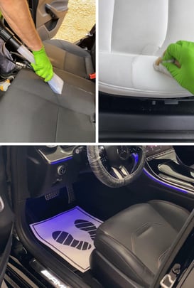 2. Aspirado completo: Se aspira todo el interior, maletero, alfombrillas y railes de los asientos.